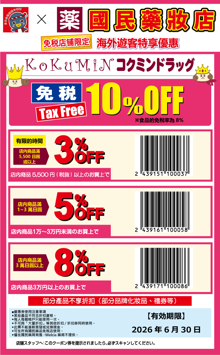 2025.6 更新:科摩思新增滿5萬9% off,新增札幌藥妝店夏日特賣還有免稅規定。