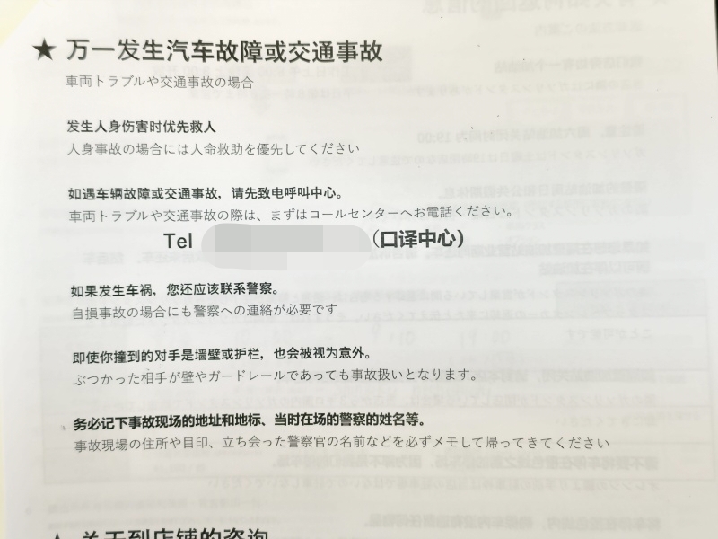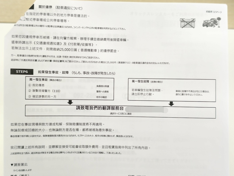 當然有中文的資料可以參考,ORIX 歐力士租車這麼大的品牌,很多華人和他們租車多年,中文的說明資料非常的完整。主要是如果發生汽車故障或是交通事故應該要怎麼辦,可以選擇的保險方案等等。