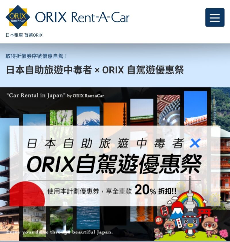 日本自助旅遊中毒者 × ORIX 自駕遊優惠祭